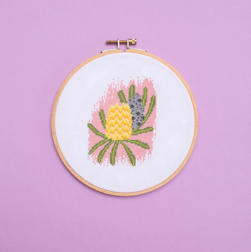 The golden banksia, a strikingly unique Australian native plant known for its candle-like flower spikes and leathery leaves, has inspired artists and crafters alike for generations. Now, this iconic flora has been beautifully transformed into a delightful cross stitch kit, perfect for floral-loving stitchers! Capturing the intricate details and vibrant colours of the banksia, this kit invites you to create your own piece of Australian art while indulging in the mindful art of cross stitch. Whether you’re a seasoned stitcher or just starting your crafting journey, this modern take on a classic motif will add a touch of the bush to your home, all while you enjoy the soothing rhythm of needle and thread.