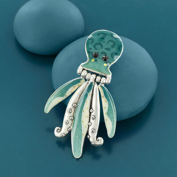 Measuring 5.1cm in height, this octopus brooch is adorned with sparkling rhinestones, delicate glitter, and tiny microbeads, adding a luxurious touch that makes it truly eye-catching. Perfect for ocean lovers or anyone looking to make a statement, this unique accessory adds a whimsical flair to any outfit, making it an ideal choice for both casual and formal occasions. Dive into the depths of style with this exquisite piece!