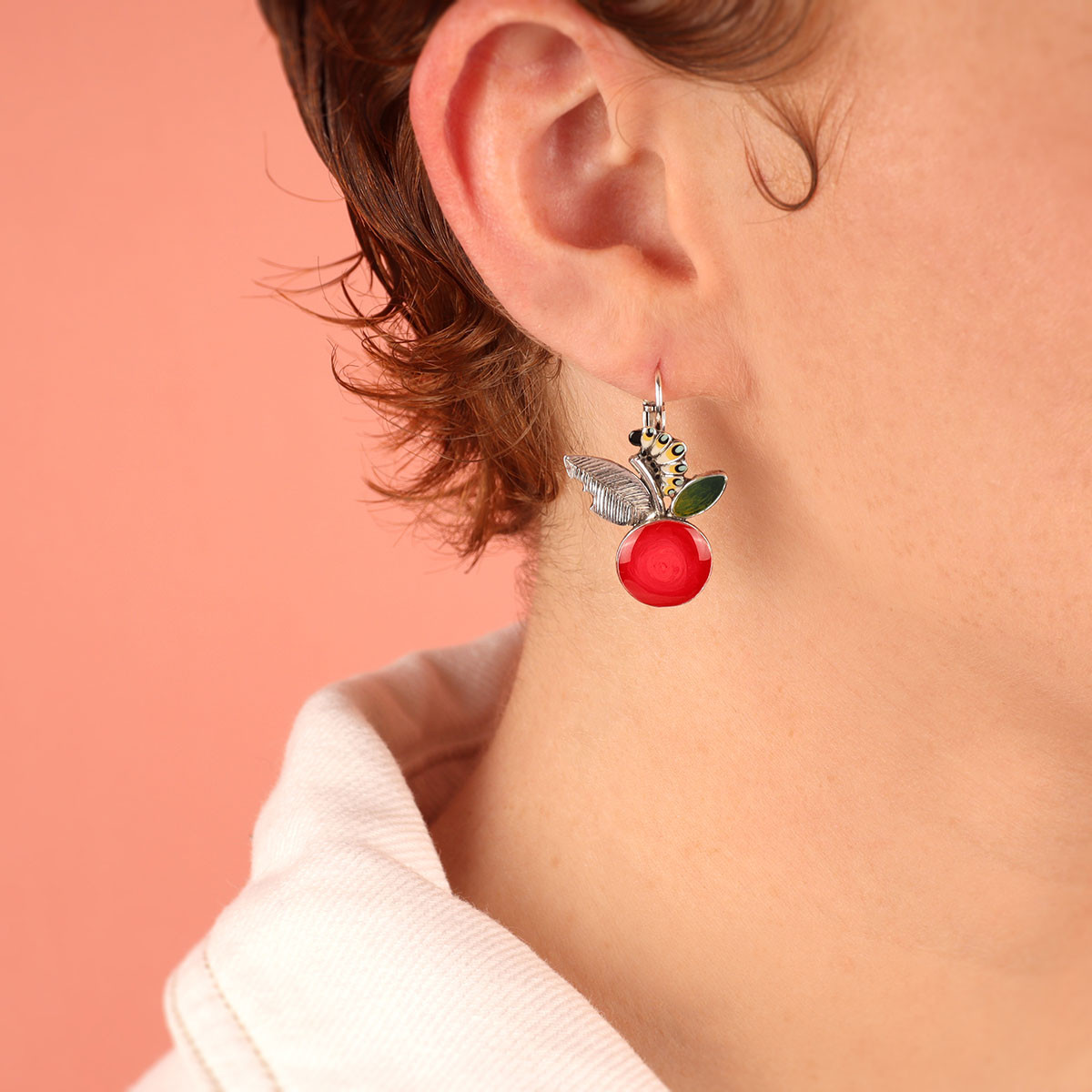 Taratata Cocoon 2025 (apple and caterpillar) leverback earrings SHORT
