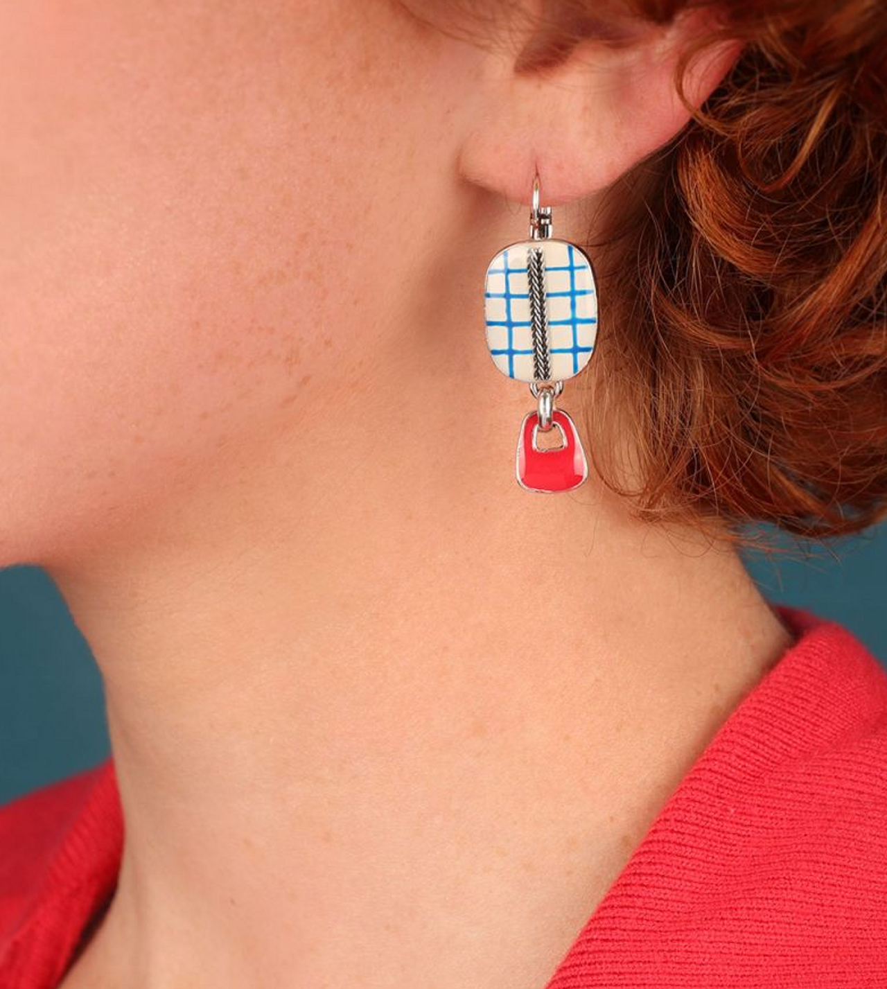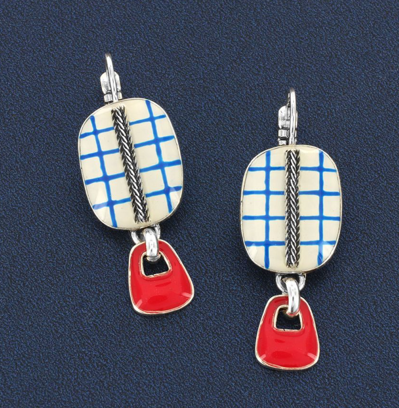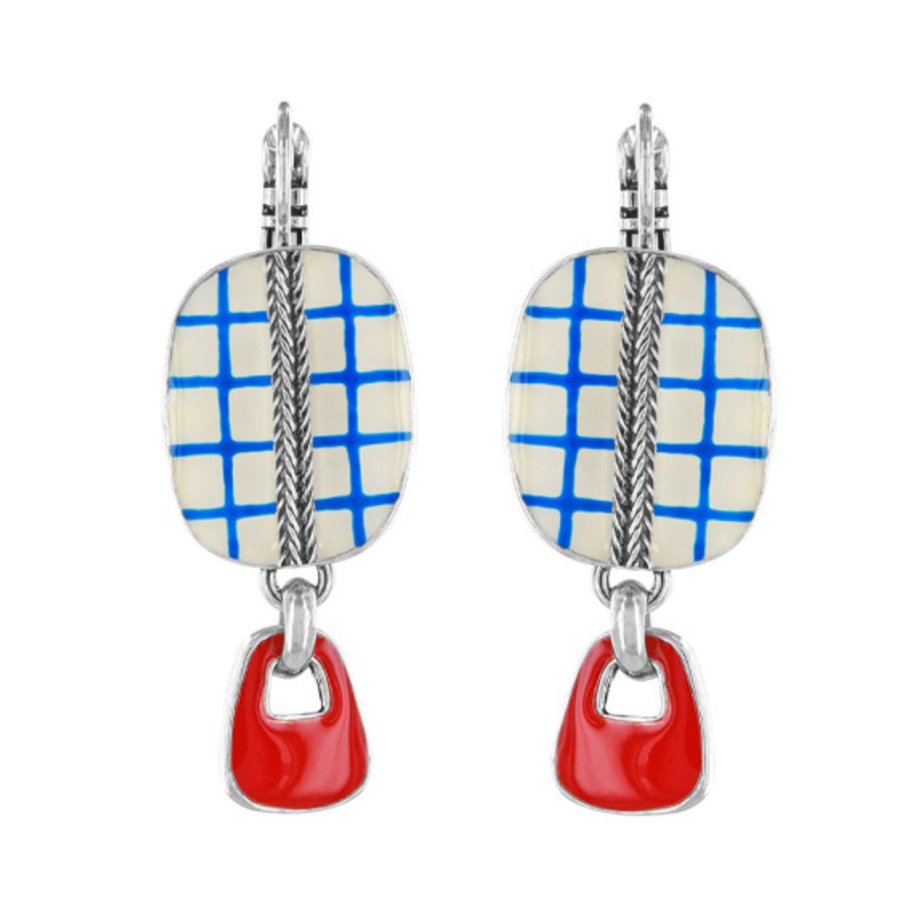 Taratata Dormeuses Gomme Blue and White Check leverback earrings