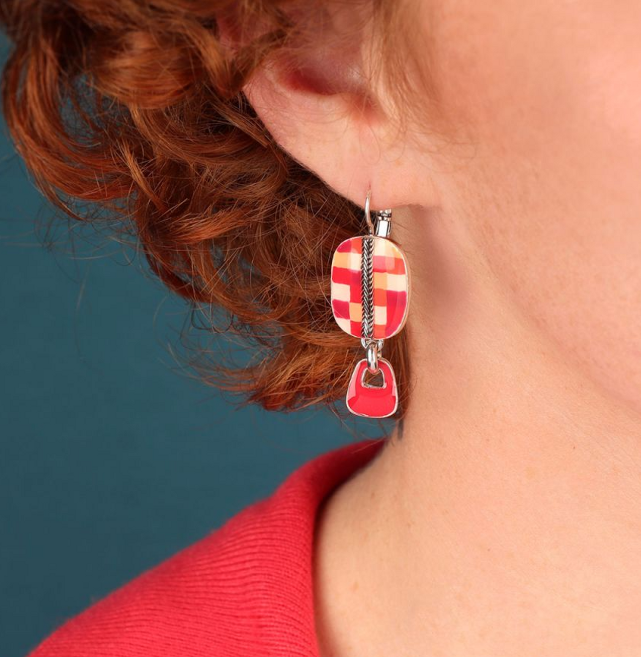 Taratata Dormeuses Gomme Red Check leverback earrings
