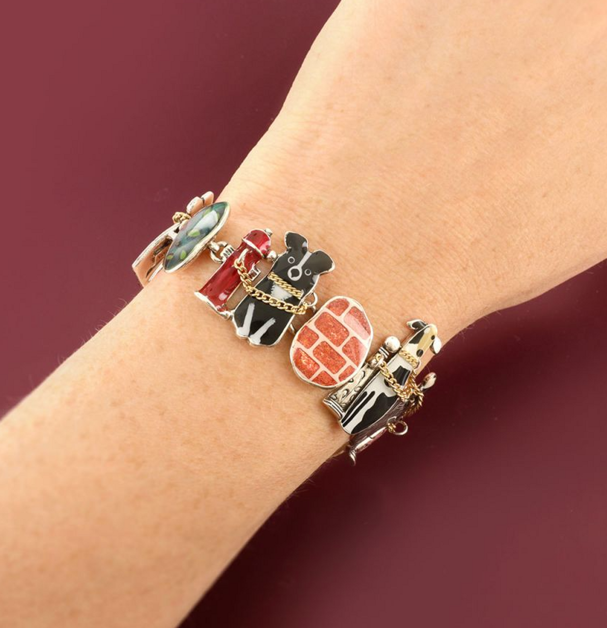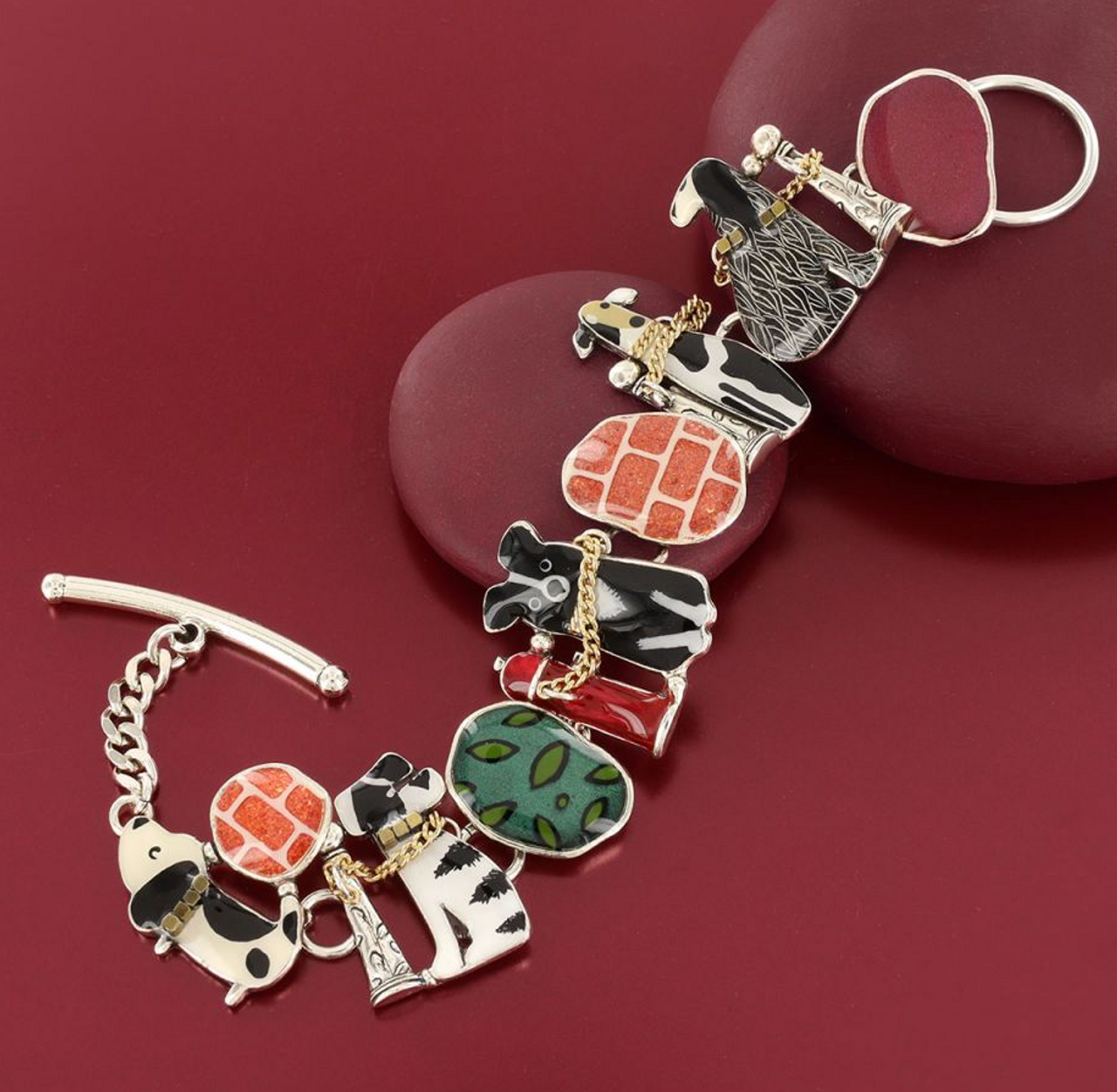 Composition: metal, colored resins whose patterns are hand-painted, tinted hematite