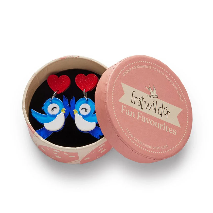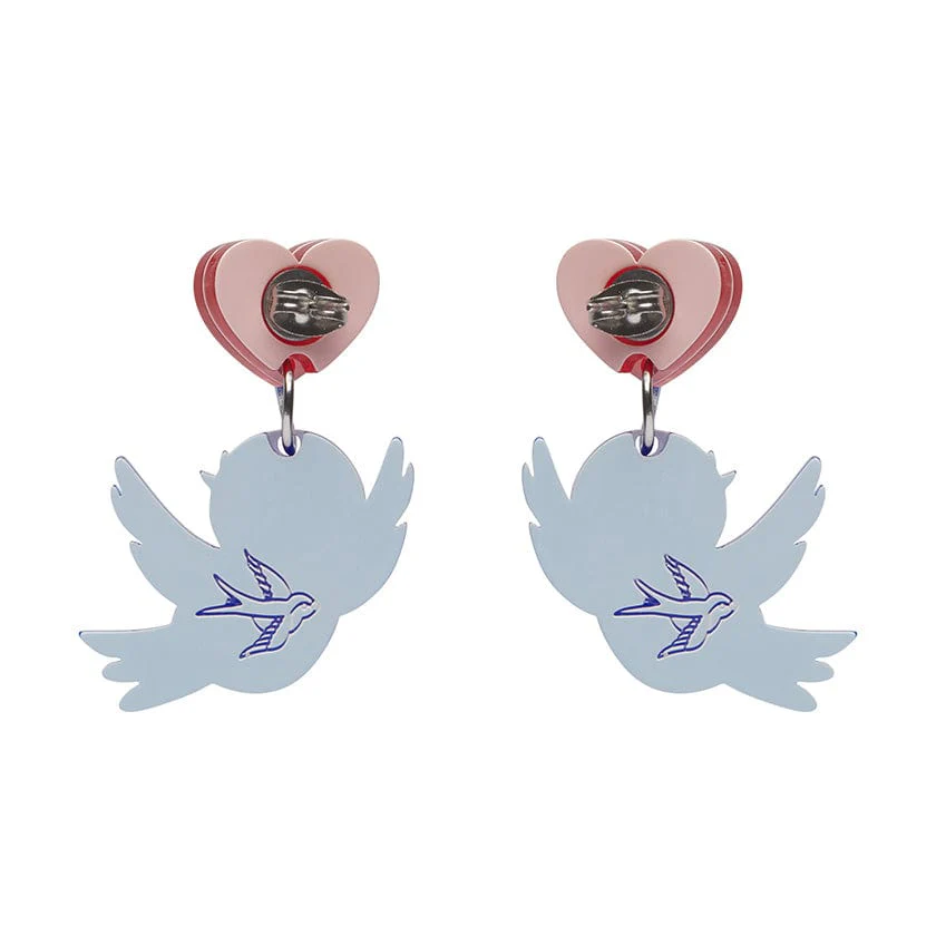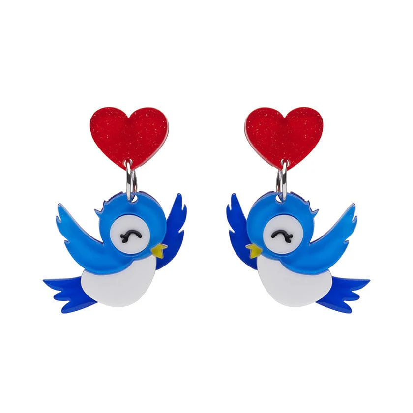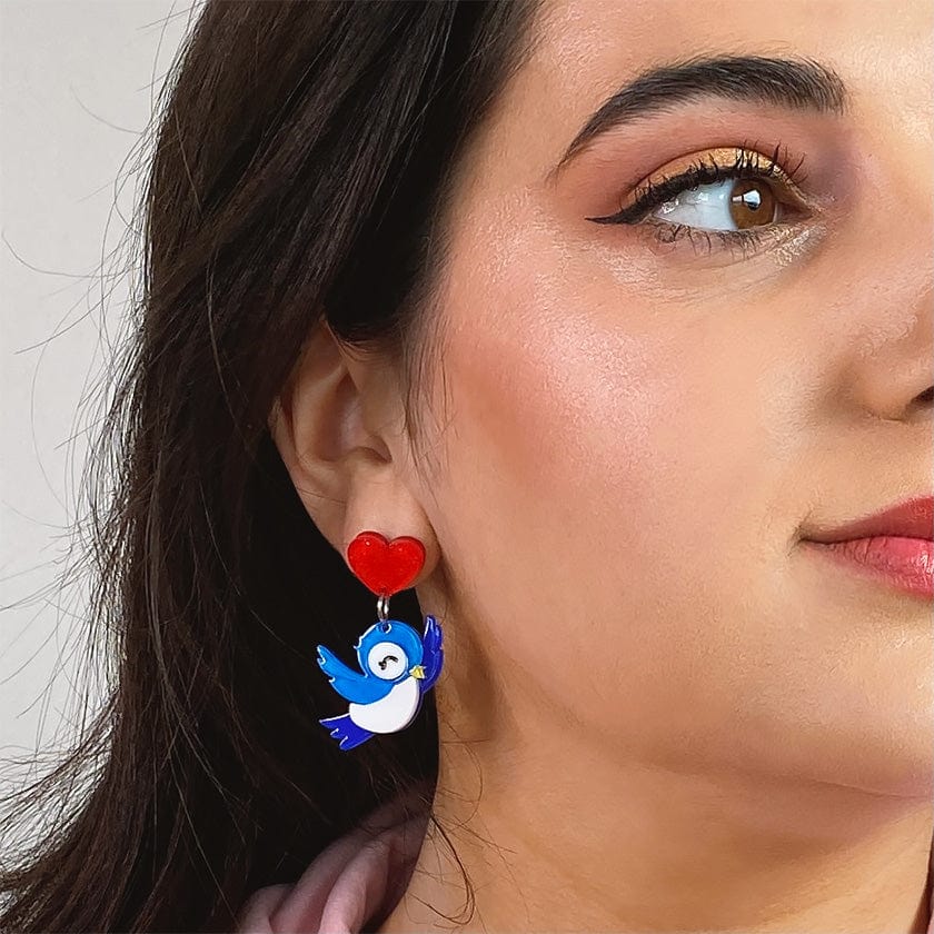 Brimming with benevolence, our beautiful bluebird drop stud earrings, hand-assembled from terrific textured resins, feature hand-finished details and as much heart as you can fit onto your lobe.
