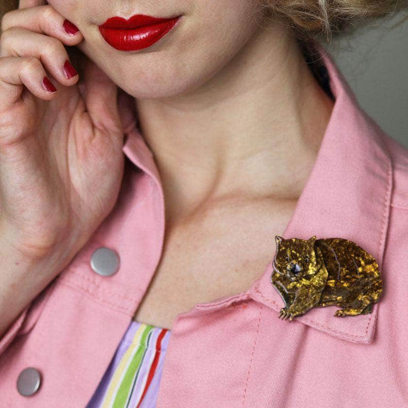 Our short-legged marsupial mate here had been hand-assembled from selected textured resins and features hand-painted details. Usually found in forested, mountainous, and heartland areas, this particular wombat will be right at home pinned on your warmest cardigan or blouse.