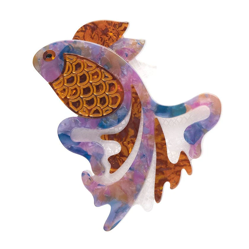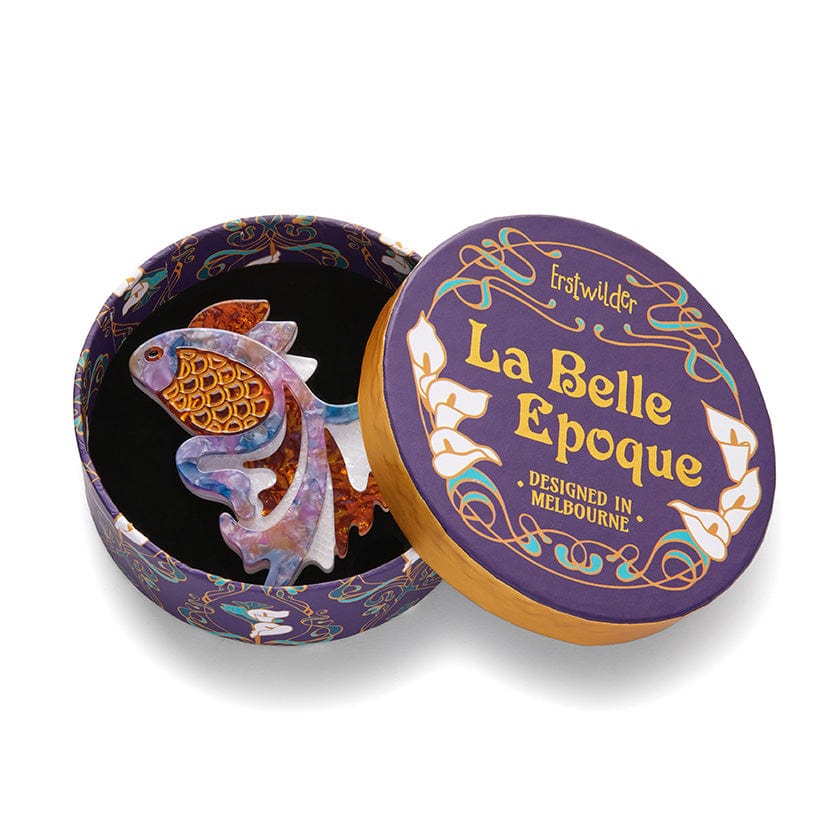 Channel the beauty of the ocean with this Art Nouveau-inspired fish brooch. Hand-crafted from textured resins with intricate details, this elegant wearable art piece radiates a tranquil and calming essence and pairs exquisitely with the other ocean themed designs in the La Belle Époque release.