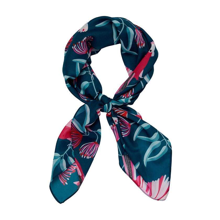 This lightweight head scarf, features a repeat pattern of the Erstwilder x Jocelyn Proust Galah design, with additional botanical accents. Made from 100% Polyester, with a velvet chiffon feel, you’ll be feeling tickled pink wearing this delight.