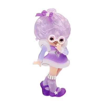 Quiet brilliance meets bright design in this limited-run Shy Violet brooch. Hand-assembled from carefully layered resin for the official Erstwilder x Rainbow Brite release, this thoughtful Colour Kid makes a sweet and clever addition to any wearable art collection.